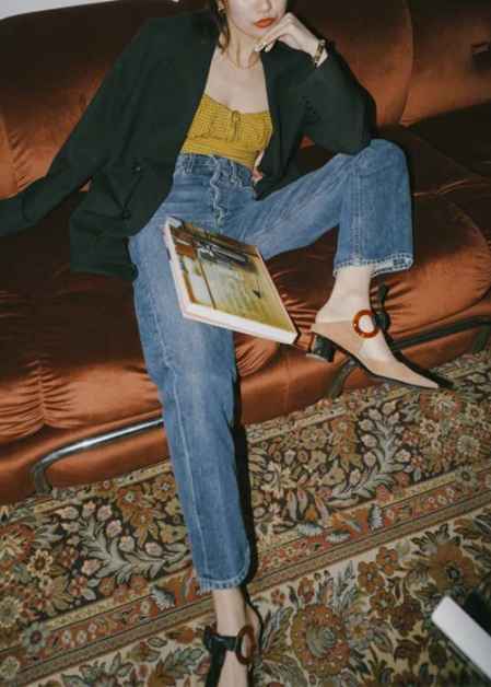 如果还是比较内敛,觉得大面积的**黄不是很好意思穿出来,不妨将**黄的元素运用到配饰中,比如**色的帆布鞋或者包包,搭配最简约的白衬衫或者牛仔裤都足够明丽,整个造型亮起来本身就能让面色更加迷人哦。