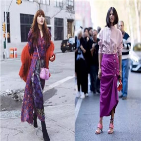紫红色跟淡粉紫色是同色调;而蓝色与紫色放一起也很搭,另外像一些较难搭的宝蓝色外套,若内搭紫色或浅紫色,则可以互衬光泽。