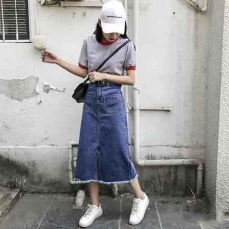 没有任何**也没有设计的基本款牛仔半身裙,无论是搭配T恤还是衬衫都**俏皮!