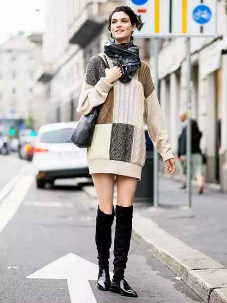 毛衣裙与长靴搭配图片 毛衣裙与长靴完美搭配美极了