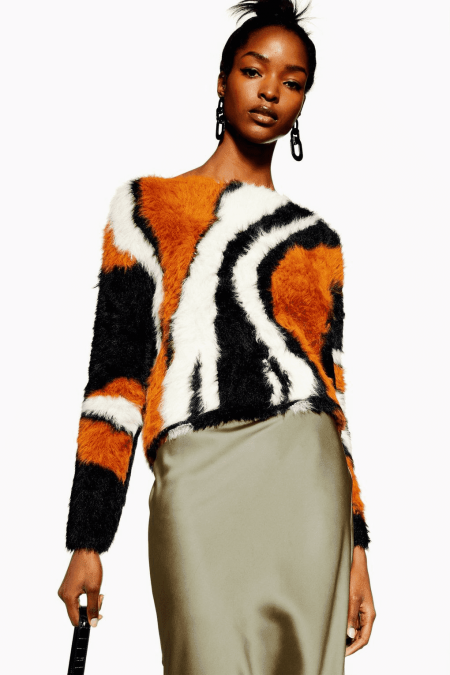 黑白黄的大理石纹理充满优雅而又精致的气息,搭配缎面长裙更显简约大气,且高腰裙与短款上衣的配搭能够有效修饰腰身比例,更显修长的身材与玲珑的曲线。