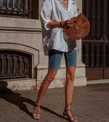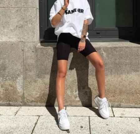 骑行短裤就是长度在膝盖以上,略微修身的短裤,从去年夏天开始一直流行到现在。