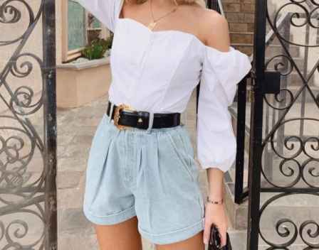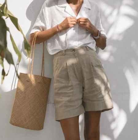 高腰的A字短裤不仅能修饰胯部和**曲线,在腰部系一条腰带,还能勾勒出小蛮腰。