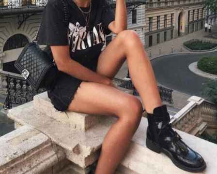 用黑色热裤搭配同色系衣服,不视觉上显瘦显腿长,整个lookA到爆。