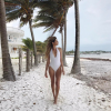 去海边玩穿什么衣服 No.2:黑白条纹比基尼+白色人字拖+遮阳帽+墨镜