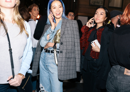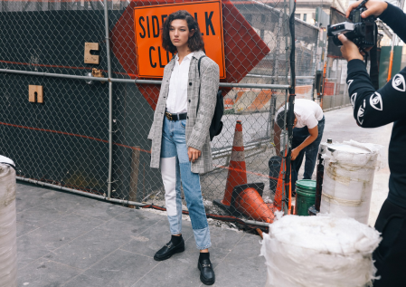 西装混搭牛仔裤是今年最流行的穿法,保留了西装的干练和帅气,瞬间又打破了西装的正式和严肃感。而且复古格纹自带英伦风的调调,女生穿上也有一种文艺范儿。