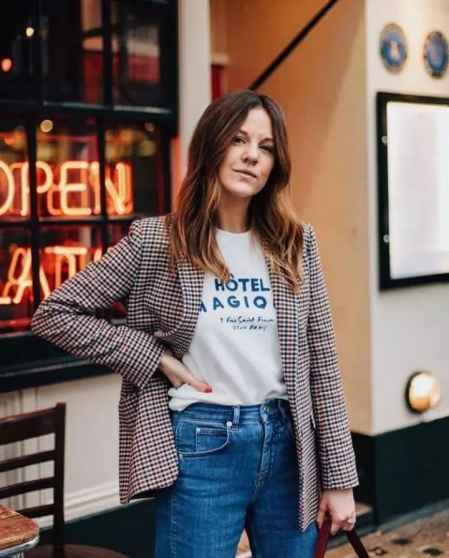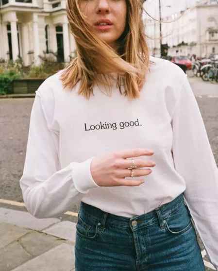 很多博主喜欢穿法语字母T,Sezane算是点名率很高的一个牌子了,下图这件我看到好多人穿。
