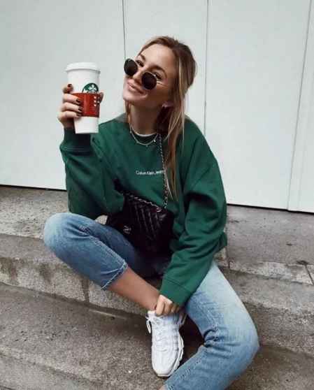 这个我之前写条纹T的时候提到过。比起修身横条纹T,落肩的Oversize款式更随性时髦。