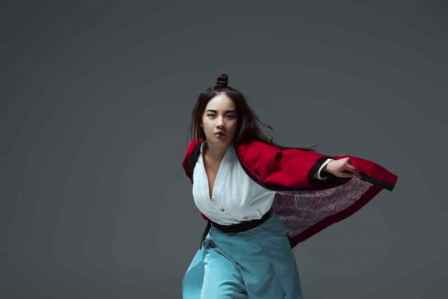 帅气的毛领中长款棉服,高级灰色的外套+亮红色针织衫,温暖的颜色特别适合冬天。