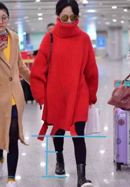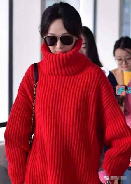 这不,前两天杨紫的机场LOOK就不太合身,一件红色的高领长款毛衣成功拉低了小猴子的档次和衣品