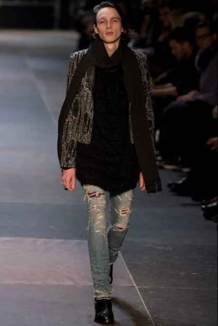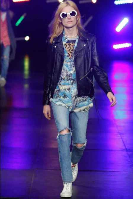 追溯破洞牛仔裤的起源,和摇滚不可分离,不可一世的抑郁优雅的摇滚风才是人们膜拜这项单品的源头。紧成第二层皮肤的破洞牛仔裤和切尔西高跟长靴完美契合,长长的裤脚盖过靴筒,恰好的淤积长度一点都不拖沓,翻皮的高级面料衬托牛仔体现出时装该有的高级奢华感,少年的青春就是要不羁和与众不同。