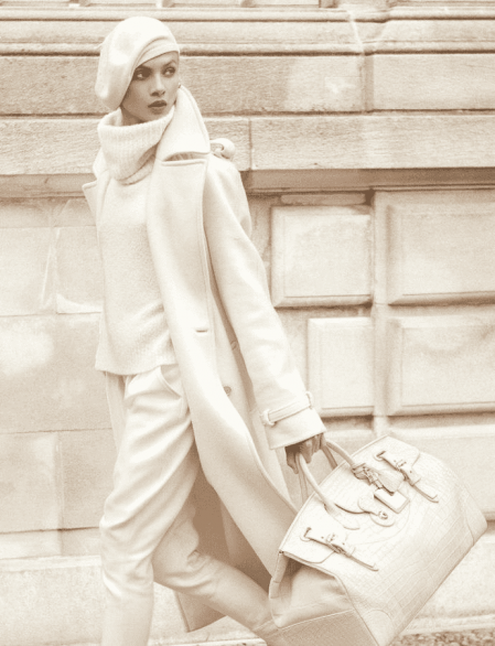 纯白的搭配不仅不会给人单调的感觉,还会有一种如同雪地精灵化身一般的惊艳感。无论是贝雷帽还是灯笼窄腿裤,搭配白色呢子大衣都充满中性而复古的帅气,宽松的白色高领毛衣增添一丝随性而优雅的气场。连配饰都选择毫无多余装饰的白色,整个造型无比夺人眼球。