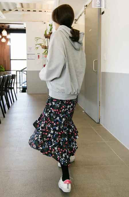卫衣搭配碎花长裙
