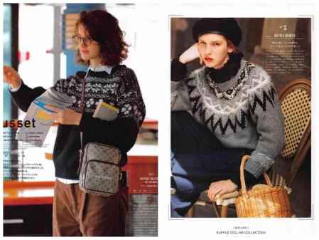 图案更简单一点,还可以尝试有这种条纹拼色的毛衣,上面会有毛毛须须的设计,也是今年的流行点之一。