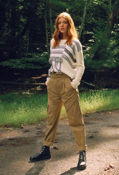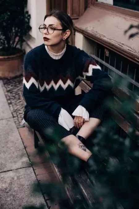 圣诞节本来是**节日,有了圣诞老人之后,从北欧那边开始流行起来的,而且近两年来,北欧图案的毛衣在时尚圈中还挺流行的,雪花图案是非常典型的北欧元素,锯齿型的线条也非常深入人心。因为上半身的图案比较有设计感,所以下半身的穿搭会尽量以简约为主。