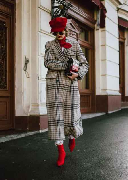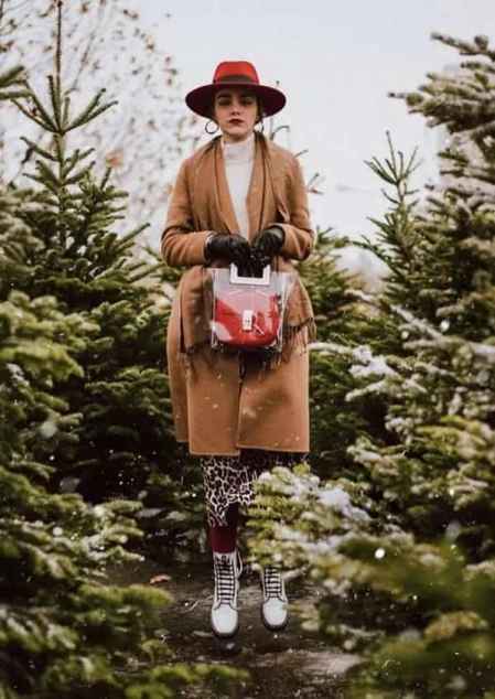 定下来红色的配饰,服装就穿大衣吧~大衣的实用程度在冬天是不容置疑的,也非常百搭,一件质感大衣能搭出很多造型,自动将图中的造型加上红帽子红袜子哦,嘻嘻。