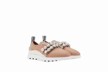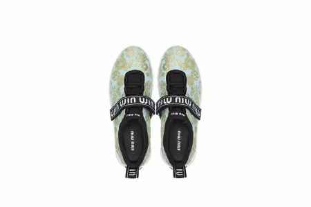 如今被Miu Miu赋予更多现代的元素,例如Miu Miu logo印花或水晶花朵,为硬朗的运动鞋外形调入俏皮**气息▼