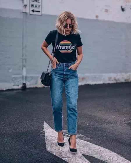 无论是纯色干净的黑色T恤还是加上了图案印花,搭配起牛仔裤来都是充满了复古感,走在街头更是出挑。