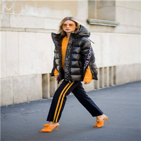 冬天出镜率最高的外套当属蓬松的羽绒服了,但是许多小仙女一开始都是拒绝的,羽绒服很容易穿的**。但是,如果羽绒服混搭一条今年最流行的运动裤,瞬间就具有时髦感了。而且侧边有条纹设计的运动裤还能为你打造大长腿哦。