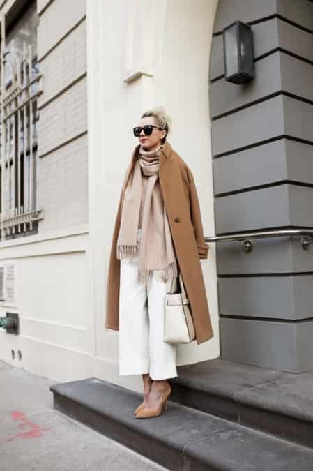 无论什么和无彩色(黑白灰)搭配在一起都不会出错,并且各有各的风味,卡其色外套内搭无彩色或者**选择无彩色都十分的和谐。卡其色搭配黑色,温柔知性的look里注入干练硬朗的味道。