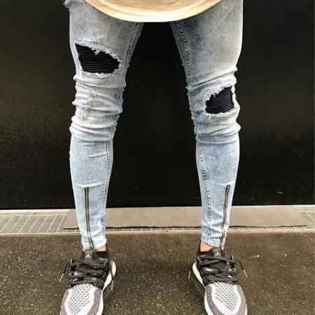 ▲ 穿着面料太薄过软的牛仔裤,会让**腿部肌群线条都一览无遗。