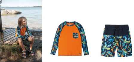 KROOLAUS长袖泳装,剪裁修身,UV50+的紫外线防护功能,适合游泳和沙滩穿着。可与之配搭的PAPAIJA短裤,网眼内衬,腰围可调节,口袋设计兼具实用与美观,匠心独具。