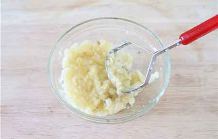做法:1、将香蕉放在面膜碗中,用小勺子碾成糊状,注意要快点碾,防止香蕉氧化变黑;