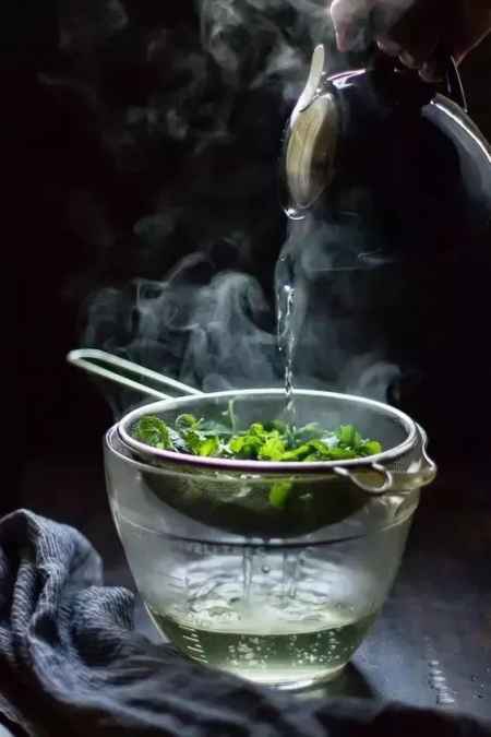 使用时取一袋绿茶或2克绿茶,在茶壶里用2升水煮成茶水,待茶水变温就可以直接清洗了。