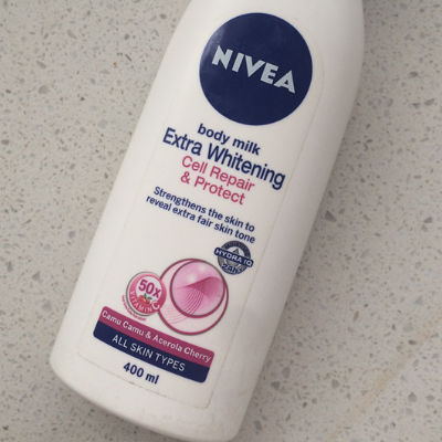 妮维雅身体乳 真是便宜到不行啊原价55谁知道结账发现只要32HKD 400ml一大瓶可以用到地老天荒了。一直想要一罐美白的然后就看到有人po这款说会白 又刚好看到又便宜就买了。味道不是很喜欢,像洗发水的味道。。不过涂了之后挺好吸收,过了一夜腿还有点滑,也不油所以也还不错。而且感觉会用的比较省因为不用挤很多就可以涂全身了。