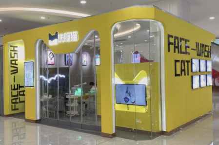 洗脸猫品牌自成立以来,便针对门店形象、用户服务不断进行升级优化。目前门店已发展至450家+,门店装潢统一采用简约、美观的视觉形象,不仅加强了消费者对洗脸猫的品牌认知,极简的空间设计也让消费者享受到更舒适的护肤空间。