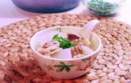 制法:猪肾,洗净,切开,除去筋膜,放冷水中浸泡2小时,每隔半小时换水1次,最后用热水焯一下以去臊味,切成小丁,备用;山药,去皮洗净,切丁,与其他药一起放入锅中,再加入猪肾及水适量,并加料酒、盐、姜、葱、胡椒等,先以武火煮沸,再以文火炖至酥,即可食用。