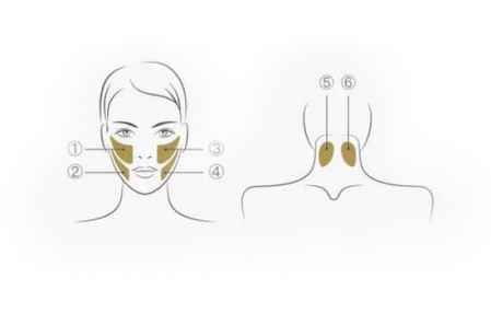 将面部分为六个区域,脸颊和颌下、颈部,左右分别两个区域。