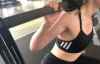 4.笔黑下方笑时突出的部分作为起点,这是腮红画法的关键。让腮红刷开始向太阳穴侧着刷,然后刷回颧骨下。眼睛尾部的下部涂有“く”形状的高光泽粉末。
