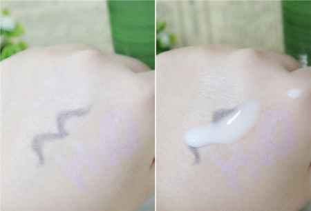 这款洗面奶是乳白色的乳液质地,质地细腻柔滑,很好涂抹开来,延展性能很好。有着淡淡的绿茶味道,很清爽、好闻。使用时几乎没有泡沫,因为它属于无泡型。