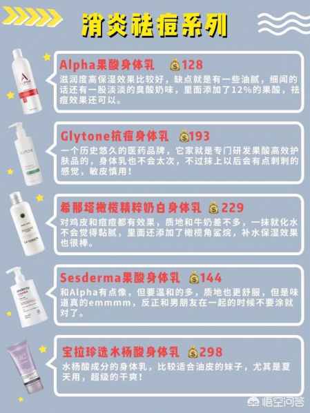 水杨酸成分的身体乳,比较适合油皮的妹子,尤其是夏天用,超级的**!