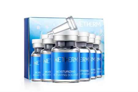 寡肽冻干粉储存在一个瓶子里面,首先需要沿着瓶身的箭头方向打开冻干粉和溶媒盖子,需要将铝盖一起拿掉,然后打开活塞,需要将溶媒全部倒进冻干粉瓶子里面,接着需要将透明的胶头套上,然后轻轻地摇晃均匀,直到两种产品完全混合。
