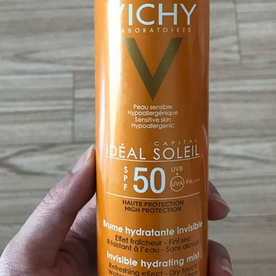 橙色的外包很漂亮,200ml很大的容量,防晒值很高,从外表就很喜欢。薇姿这款防晒喷雾瓶口是旋转设计,往右旋转可开启,往左旋转可关闭,密封很严。瓶口开着,倒着晃,怎么晃都不会洒,再不用担心喷雾洒包包的现象。这款防晒是200ml,但无论是放的化妆包还是出门随身携带的小包,都轻松装下,方便携带。刚喷上去是白白的,味道很清淡,不刺鼻。轻轻拍开后,很水润,轻薄,贴合皮肤,不油腻,形成带着光泽的保护膜。用水冲过后,也没有出现乳化现象,防水性较好,出汗也不怕。假期出游,出发前在29度的大太阳天里,出去耍一天,完全没变化,没有变红,晒黑,最重要的是早上出门忘带喷雾了,整整一天没有补过,也没有晒黑,可见防晒功能很持久。
