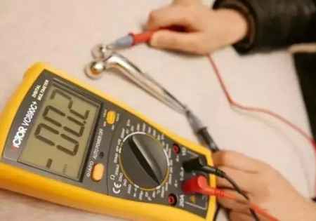 第二步,取出refa美容仪,将电流计的正极(红表笔)接触美容仪滚轮,将电流计的负极(黑表笔)接触美容仪手柄;