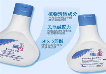 施巴婴儿沐浴露经过科学研究,沐浴露遇水不会发生化学反应,所以不会产生刺激婴儿皮肤的物质,还可以有效地抑制细菌的滋生,保护婴儿皮肤不受损害。还可以预防婴儿过敏、起红疹,还可以平衡婴儿皮肤的水油平衡,缓解湿疹。