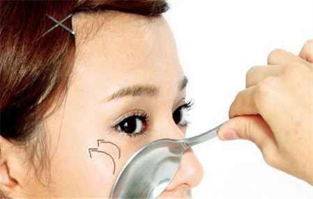 准备一支普通的铝制匙勺,在使用过眼霜后,用勺子凸起的一面轻轻按压眼袋,促进血液的循环,改善眼袋,同时这种方法也可改善眼部浮肿的问题。
