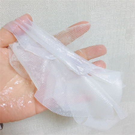当你拿出snp面膜,你会发现snp面膜纸一共是三层,最里面和最外面都是网状的设计,中间才是面膜精华贴。中间的面膜纸贴在脸上呈现一种透明的状态,比较贴合肌肤,精华液也很多。脸上用不完吸收不了还可以涂脖子上。