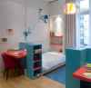 点评:像图中卧室比较的小,书籍也不是很多的话,可以在床头和床边做一个书桌,在桌子的上方制作一个书柜,这样的话书桌上方可以放书籍,而床头的上方可以放置个人衣物,这样十分具有美观性和实用性。