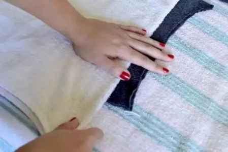 STEP 3: 25分钟后将衣物取出来拧干,平铺在毛巾上,拧干后将衣物静置在毛巾上10分钟左右。