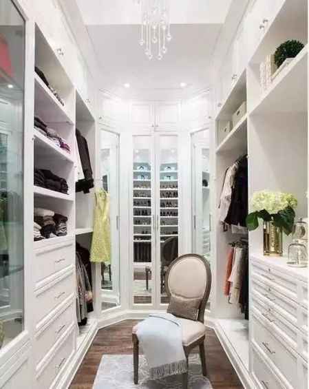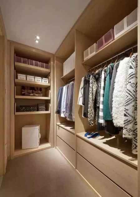 衣帽间的形成通常有两种:一种是建筑本身分割出来的,一种是通过自己或设计师,重新分割空间划分出来的。一些平时几乎不怎么穿的衣物,最好不要占用空间,整理后把它们都请出去,这是活动空间的最优化体现。从人体工程学出发
