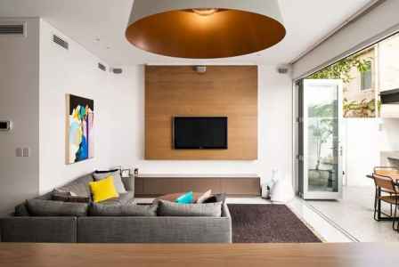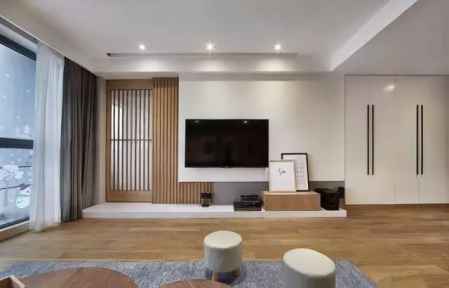 以木饰面作为电视背景墙,
