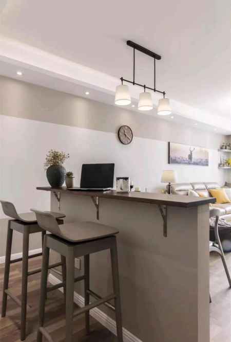 靠着餐桌的背后,还有一张吧台,可以充当书桌功能;