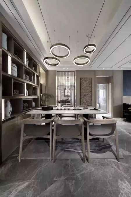 光亮、平整的抛光面可以展现一种低调的奢华,它素雅、冷静、富有格调美,不仅可以中和整个空间过于冷硬的气质,而且展现了人们对沉静自持、舒缓简单的向往。