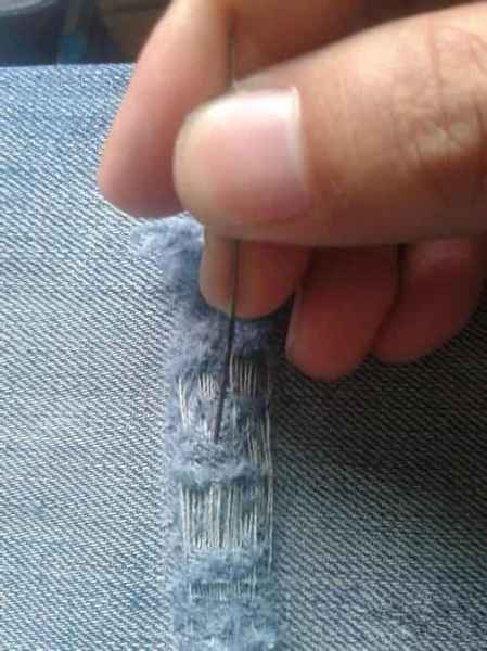 2、用剪刀朝一个方向划(左至右或者右至左),而且一定要横向划。力度别太大,防止将横向的白线割断。同时将纸板垫在裤**面,防止剪刀划坏另一面裤子。