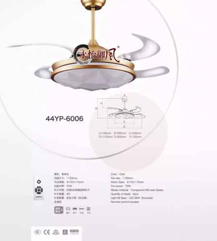 1、**安装坏境,天花板需为水泥天花或者承重≥25Kg且厚度≥10CM的木质天花;石膏天花和承重小于25Kg的木质天花不允许直接安装风扇灯,需另作吊架加固处理。