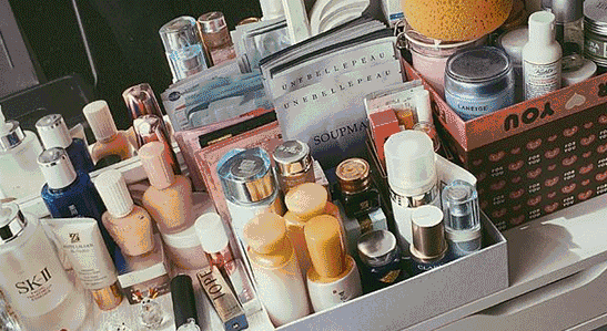 经常堆了一桌子的化妆品呀!